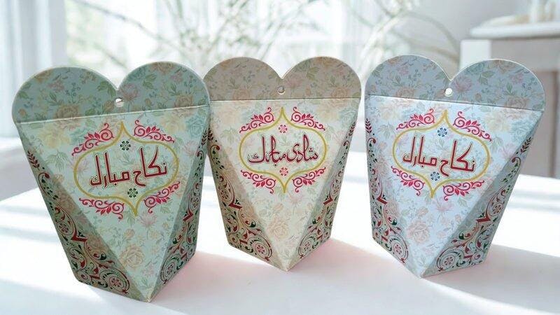 Featuring custom names and wedding date printing, this beautiful box is ideal for Nikah, weddings, or engagement functions. A great way to make your return gifts memorable and meaningful.