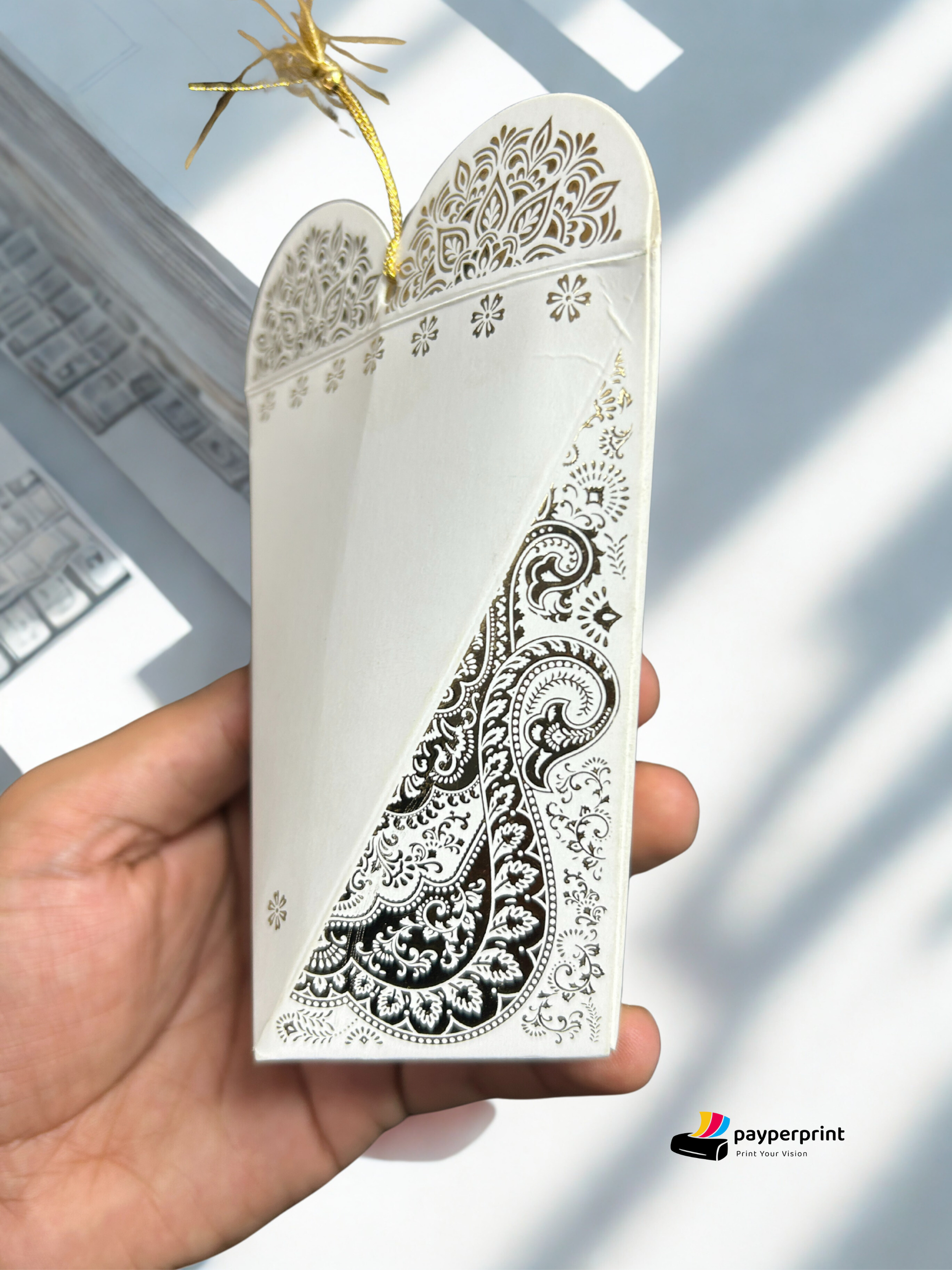 Featuring premium textured paper, gold foil calligraphy, and a stylish golden tassel, it beautifully combines tradition with luxury. Perfect for Nikah, Walima, or Islamic weddings, this box adds a royal touch to your celebration.