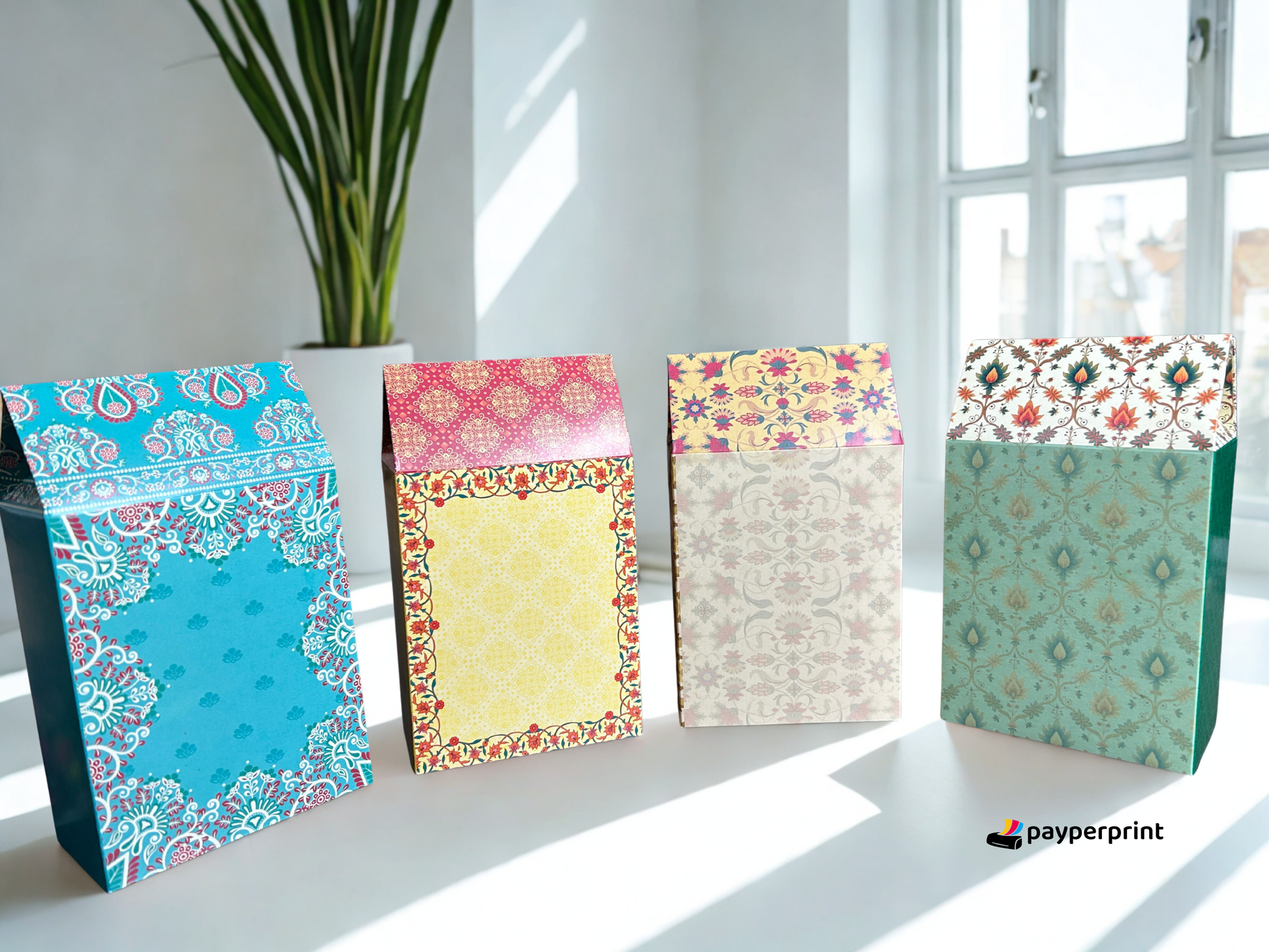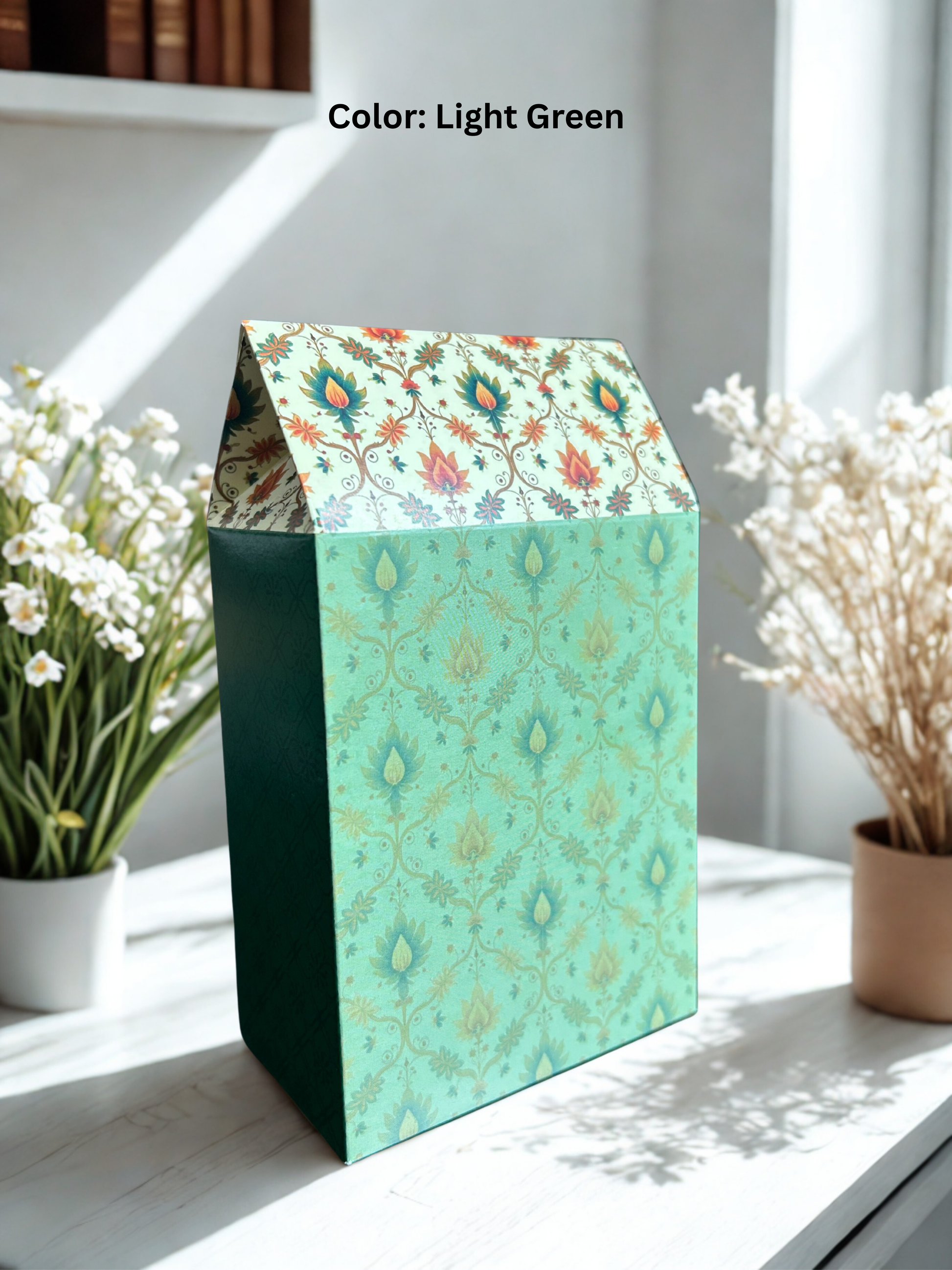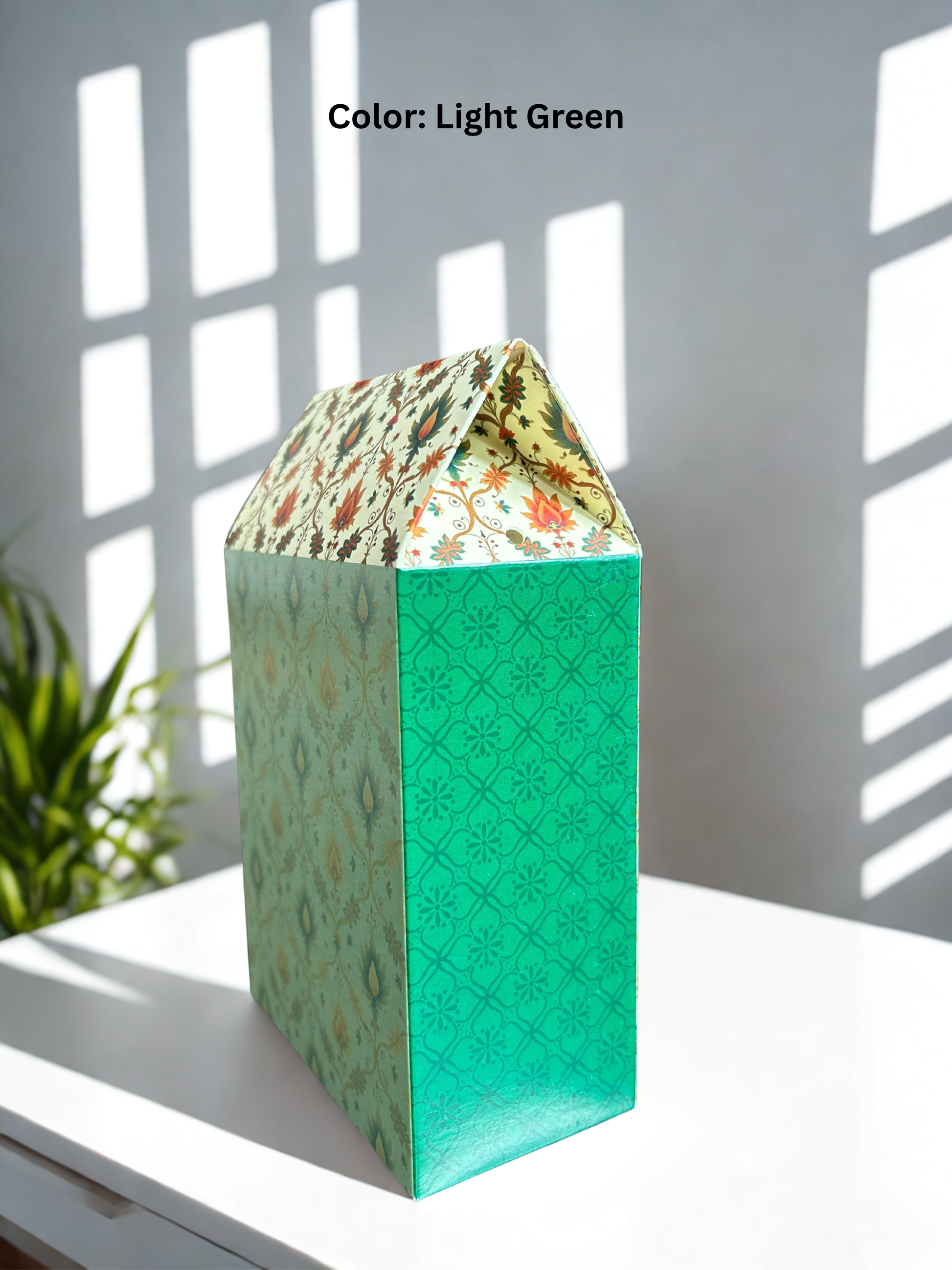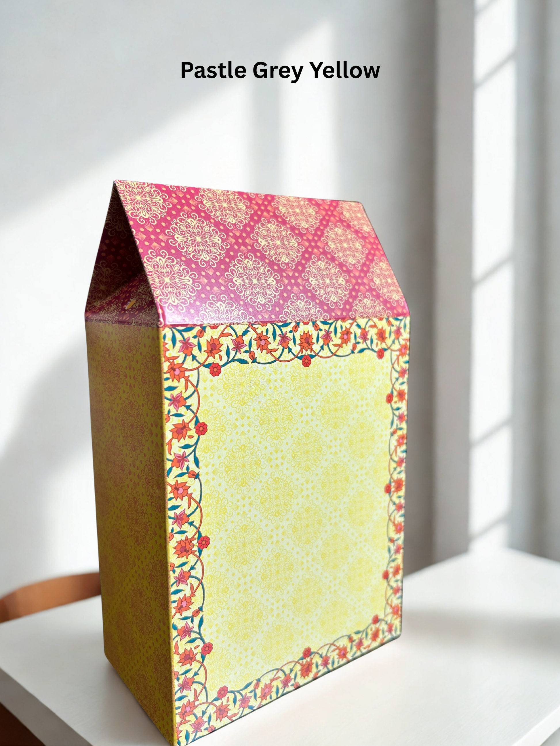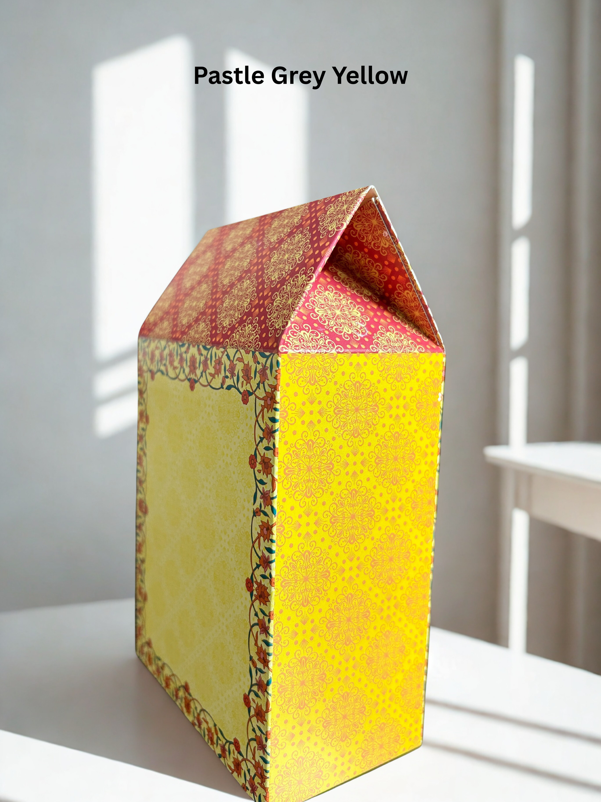 Designed with a decorative cut-out window and intricate printed detailing, these boxes are perfect for showcasing sweets, favors, dry fruits, candles, and small gifts.